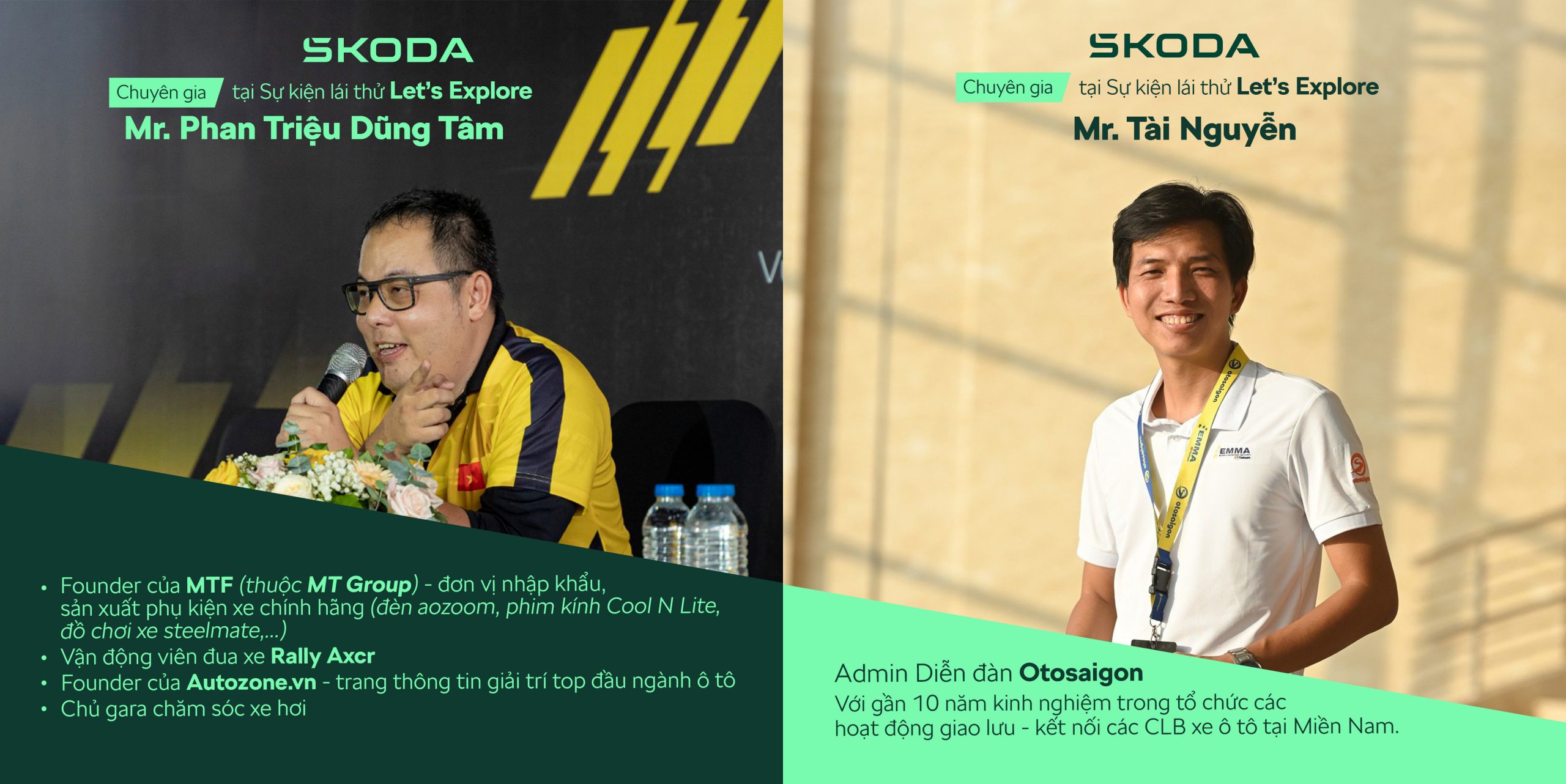Anh Phan Triệu Dũng Tâm là người sáng lập Autozone.vn – trang thông tin về ô tô và người sáng lập MTF, đơn vị hàng đầu trong việc nhập khẩu và sản xuất phụ kiện xe chính hãng (đèn aozoom, phim kính Cool N Lite, và đồ chơi xe thép,…). Anh cũng nổi tiếng với cách thứ tư là vận động viên đua xe Rally Axcr và là chủ nhân của một gara chăm sóc xe hơi uy tín. Sự hiện diện của Anh Phan Triệu Dũng Tâm tại sự kiện không chỉ những câu chuyện đầy ngẫu hứng về đam mê ô tô, mà còn là kinh nghiệm sử dụng xe châu Âu.